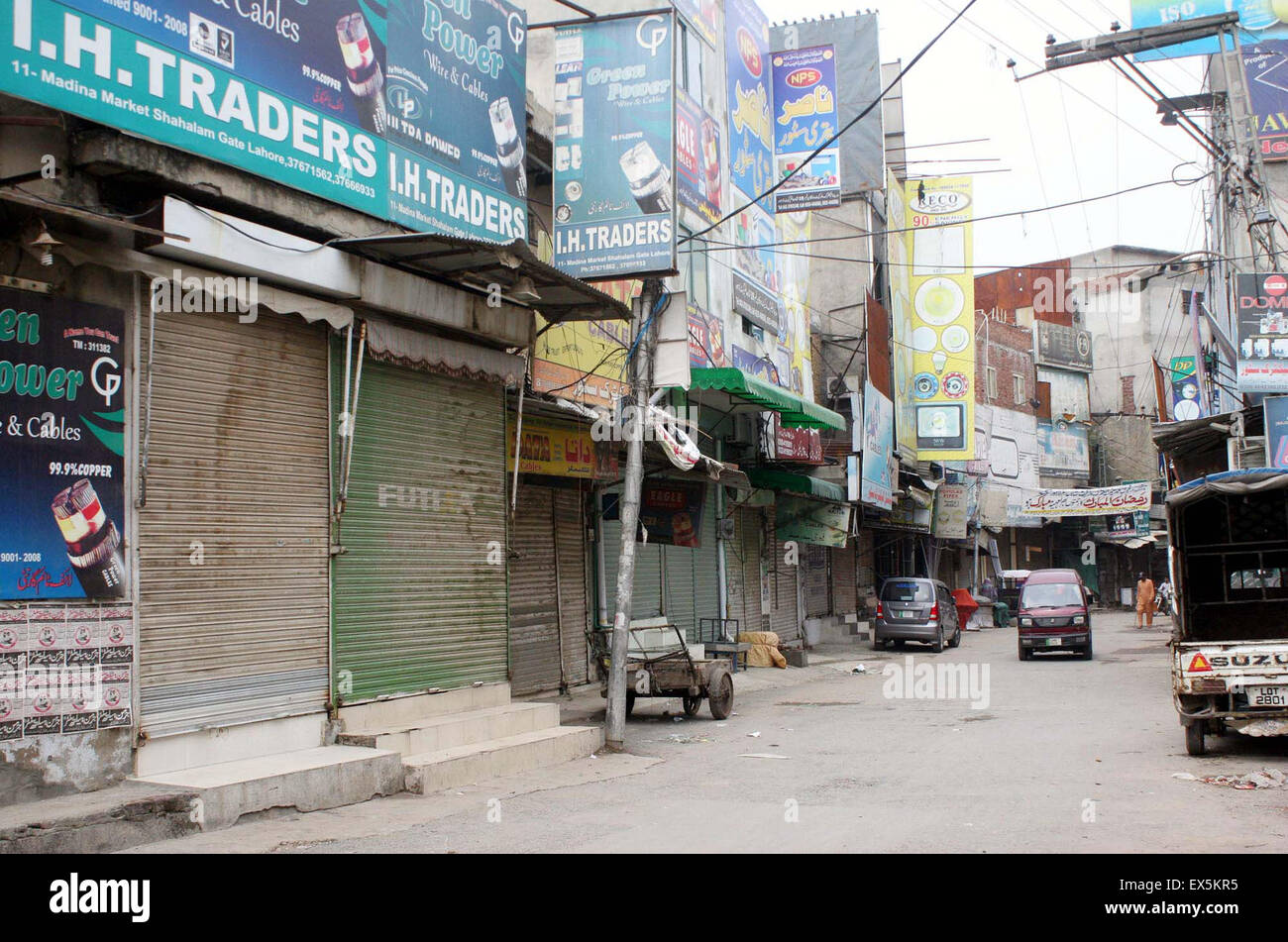 Shops Seen Closed During Shutter Down Strike Called By Traders Community Against 0 6 Tax On Banking Transactions At Shah Alam Bazar In Lahore On Tuesday July 07 2015 Stock Photo Alamy www.alamy.com